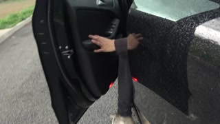 Elle has to stop to pee but too late she soaks her pants