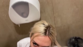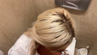 A salesgirl from a clothing store sucked off a customer's dick in the toilet of a mall