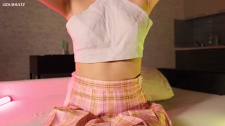 Horny schoolgirl in polka dot panties.