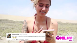 MILKY PERU - Huge tits on the beach, she is horny and wants my cock.