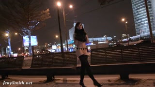 Jeny Smith naked in snow fall walking through the city