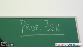 Busty brunette teacher Lezley Zen fuck in classroom