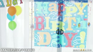 Big-tit MILF Diamond Foxxx gets three men for a birthday gangbang