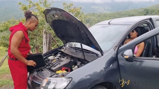 Mariana paga con su coño al mecánico que le repara el carro en una vía pública