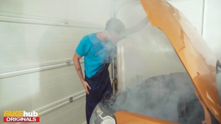 FAKEhub Originals - Redhead girls get down and dirty at the garage with young mechanic