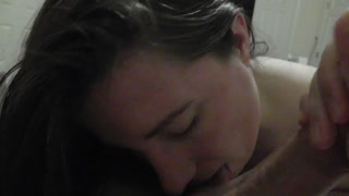 Voluptuous MILF licks hubby's balls and fingers his ass till he cums!