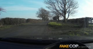 Fake Cop Brunette has some fun outside with cheeky policeman