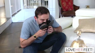 Redhead big titty MILF gives a slippery footjob
