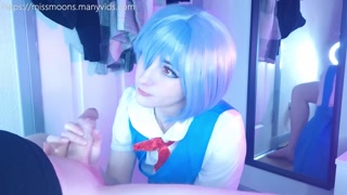 Rei Ayanami first time, fucks rough with her big oiled ass, makes step dad cum loads over cute face