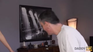 DADDY4K Teen with perky tits cheats on GF with his old daddy