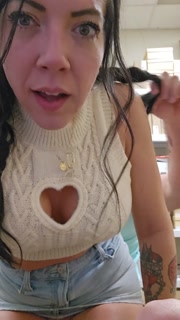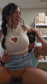Hot Mom rides dick while clothed in back of store at work, almost caught by Customer.