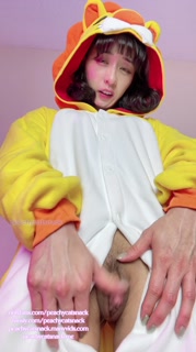 Cute Asian fit girl gets dripping wet and super horny from being naked under a kigurumi onesie