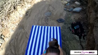 Jessica Jaymes gets fucked outside in the beach by a huge cock, big boobs