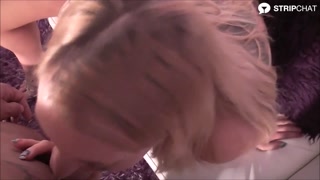 Blonde German Sally Secret gags on massive cock then swallows entire load!