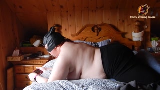 BBW smoking and watching porn while humping pillow with big orgasm.