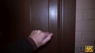 DEBT4k. Blonde drilled by collector after buying too many furniture