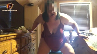 Screaming BBW smoking and riding massive dildo