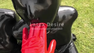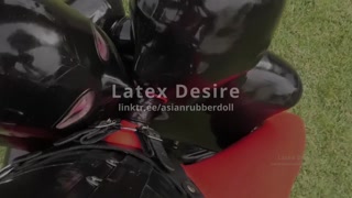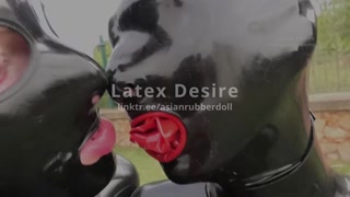 Two rubber doll hungry slutty mouths used Latex Rubber Strapon Mistress POV