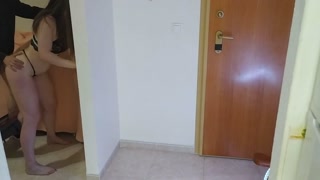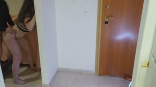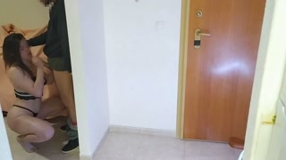 Wife fucks the delivery man while the husband watches. Cuckold fucks after