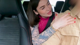 Pretty girl Nikky with a pink pussy wanted to fuck right in Uber. Cum in pussy