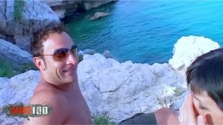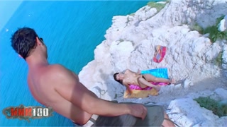 Busty brunette fucked in the ass on the rocks