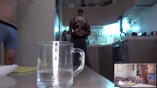 slut wife fucks right in front of her husband and the husband can't say anything and eats soup