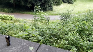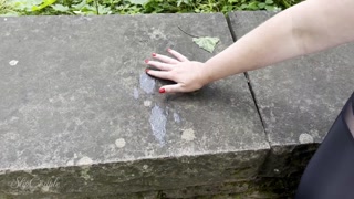Crazy girl gives sloppy handjob in a highly frequented park with a huge cumshot - risky!