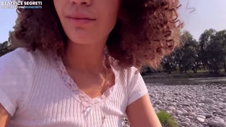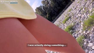 Masturbation and cumming orgasm in public place - stranger watching pussy and spread legs