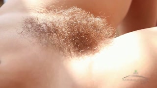 Sexy model Audrey strips down showing off her hairy pussy