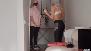 Pizza guy fucks oiled pussy during the live stream on Stripchat - Eva Elfie