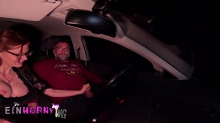 Hitchhiker fucked in the car for money - blowjob, riding and doggy in the parking lot