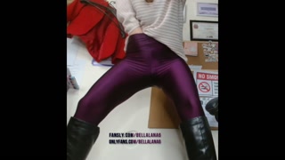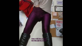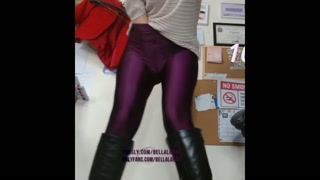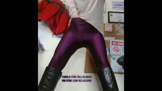 Teacher hiding in the classroom and squirting in purple leggings