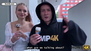 HUNT4K. Sexy blonde doesn’t mind to have sex with benefits in front of her boyfriend