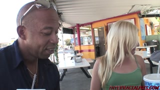 Slut blonde Paris goes for a 2 big black dicks tag team