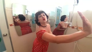Pinup babe has no panties in front of mirror Retro Vintage Nude maid Housewife