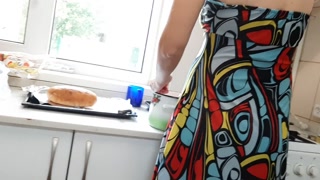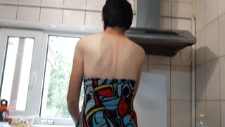 While my stepmother was preparing dinner,I made cunnilingus to my girlfriend behind her back. Part 1