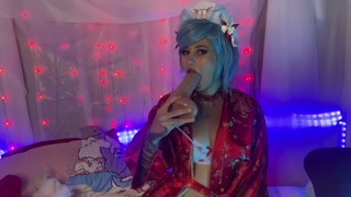 Cat Girl Egirl Fucks Herself with Dildo! (Cumshot, Riding)
