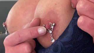 Pumping and Sucking hard my Pierced Nipples