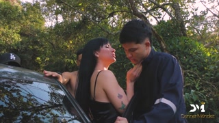 Nymphomaniac fucks her lover and the mechanic on a public-Danner Mendez & Yenifer Chacon