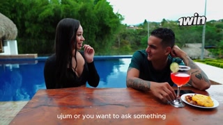 Big booty Colombian waitress Daniela Andrea gets fucked hard on a pool table after being seduced at