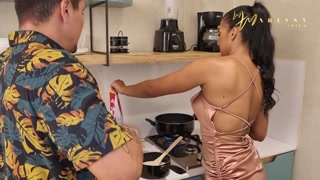My coworker gives me his cum in my mouth and fucks me in the kitchen - Mariana Martix