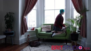Blued Haired British Schoolgirl Fucks Herself And Stretches Her Cunt