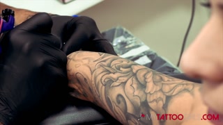 Tiny babe Sadie Pop gets tattooed then fucked hard