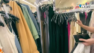 Talking, shopping, picking out a dress for a Russian hottie.
