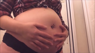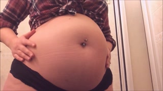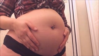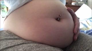 Swollen Belly Girl Stuffed Belly Rubs and Moans
