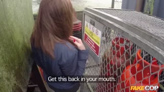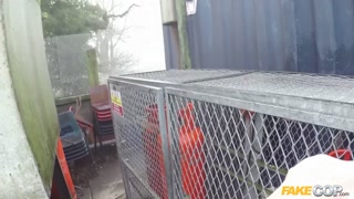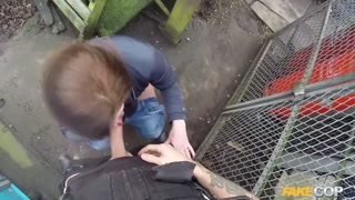 Policeman has Anal sex outdoors with a hot redhead - Fake Cop