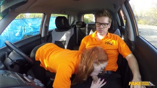 Fake Driving School - British ginger babe Ella Hughes gets her perfect pussy fucked during driving l