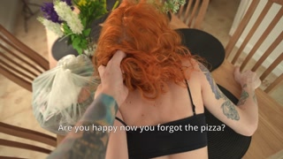 Cute courier girl forgot pizza but found a way to avoid getting fired by getting her holes fucked
