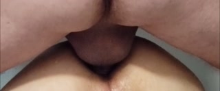 Pussy to ass. Fucked her hard in the ass and made her squirt then shot my load on her pink hole.