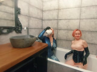 Bath relax in latex rubber with milk, romantic funny fetish video